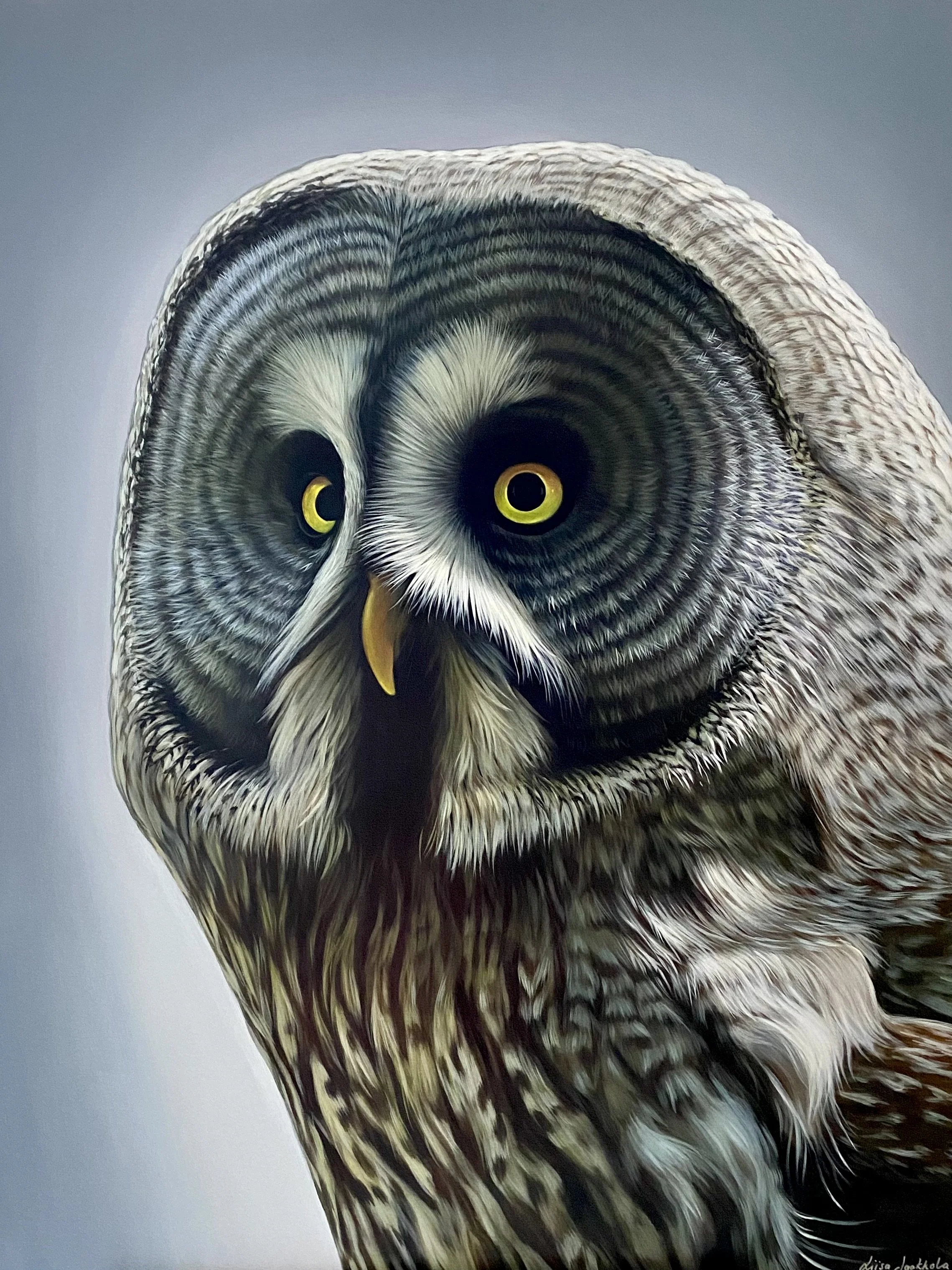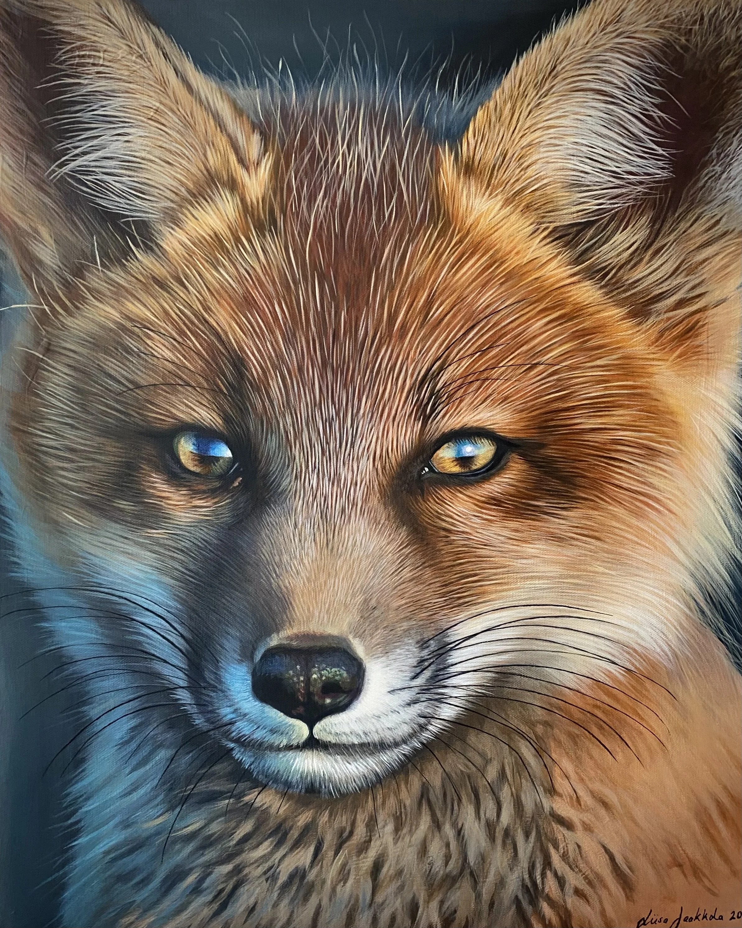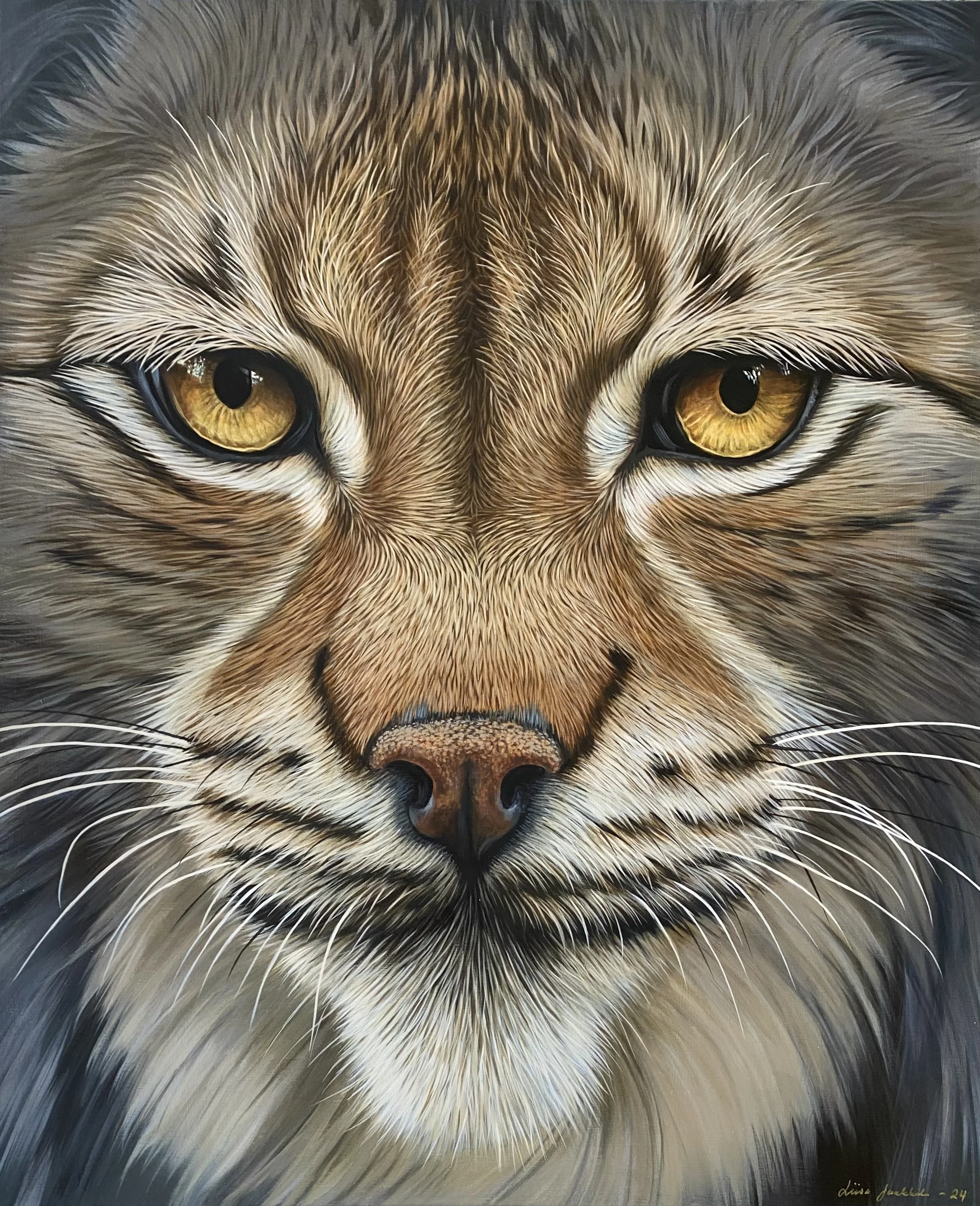 I prefer a close-to-realistic painting style, focusing on the soul of the animal as seen through their eyes. Painting their expressions is a constant source of fascination and inspiration for me.